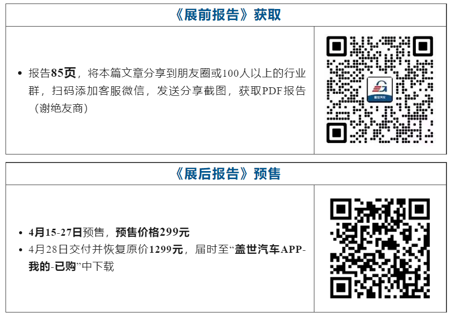 逸车资讯研究院已为大家推出了《展前报告》,共85页,供行业参考。如需获取完整版PDF,欢迎添加文末客服人员按要求获取。