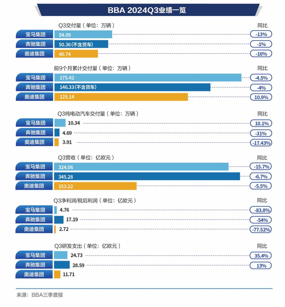 BBA三季度净利“腰斩”背后:忙赚钱的奔驰,保销量的宝马,急切求变的奥迪今年以来,开局不利的BBA交出了不及预期的三季度成绩单。三家车企营收再次下跌。其中,宝马营收下滑幅度