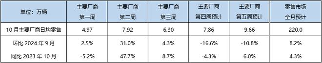 反观备受关注的新能源车零售销量,或将达到115万辆,同样环比实现2.4%的增长。对应的渗透率约为52.3%。换言之,继7月、8月、9月之后,继续保持稳定突破50%大关。