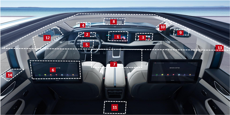 除上述三屏外,后舱的娱乐、CMS、A柱、扶手屏,包括将来的车窗显示,天幕显示等,车里的屏会越来越多,并逐渐连到一起,实现车载屏显的“无界化”设计,带来更好的人车交互体验。